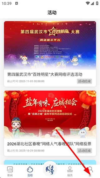 在活动页面,点击底部我,进入个人页面。