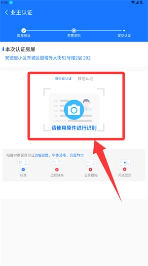 通过身份证原件识别完成实名认证,获取业主权限。