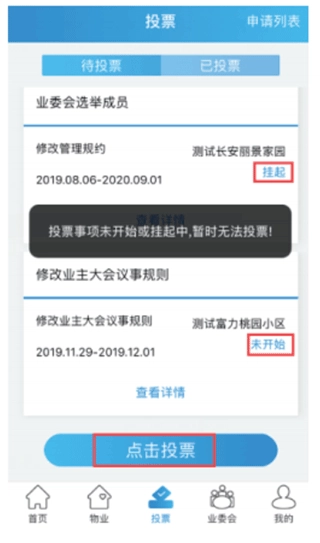 只有处于投票中状态的事项才允许进行投票,若事项显示为挂起或未开始状态,则无法开展投票操作。