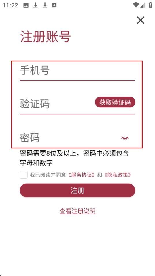 注册账号的步骤如下:首先填写【手机号】,接着获取并填写【验证码】,然后勾选同意相关协议,最后点击【注册】按钮就可以完成注册了。
