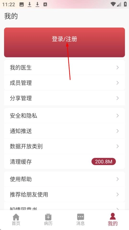 进入【我的】页面后,点击【登录/注册】按钮即可完成登录或注册操作。