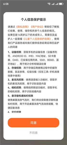 打开,阅读个人信息保护提示之后点击同意;