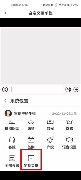 接着在系统设置中,选择“定制菜单”