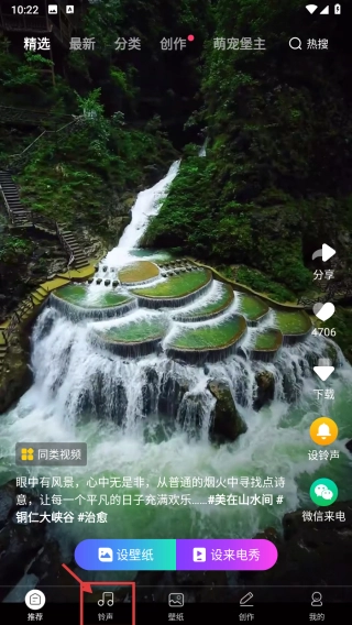打开铃声类别,点击底部的铃声选项,即可进入铃声板块页面。
