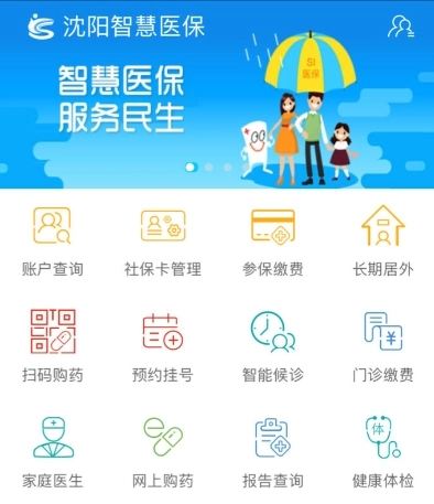 打开“沈阳智慧医保”应用程序,完成账号注册与信息绑定操作后,进入软件首页。