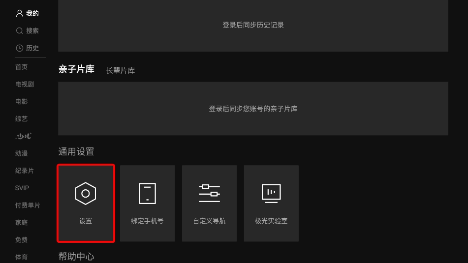 登录操作完成后,进入“我的”页面,就能查看账号管理、观看历史等相关功能。