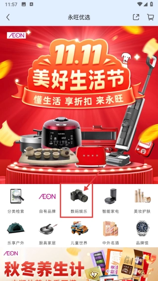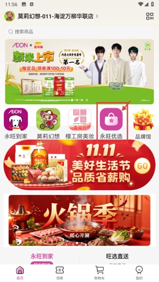 打开商超类首页后,选择“永旺优选”选项,即可进入优选商品板块页面。