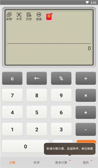 在更多计算器当中,配备了语音、分数、房贷、汇率等日常常用的功能。