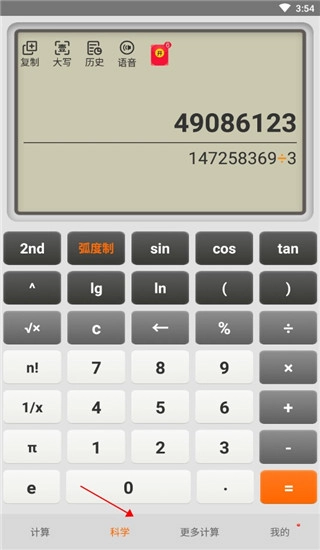 【科学计算器】除了具备高效的基础计算功能外,还支持三角函数计算以及角度与弧度的转换计算。