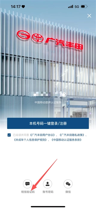 在登录方式选择界面,点击短信验证码选项,即可进入手机号码输入页面。