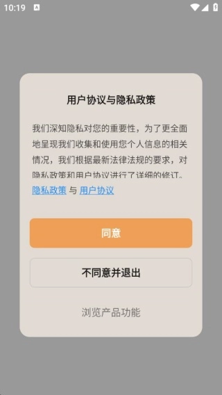 安装软件后将其打开,此时会弹出用户协议和隐私政策的相关提示,点击“同意”按钮即可。