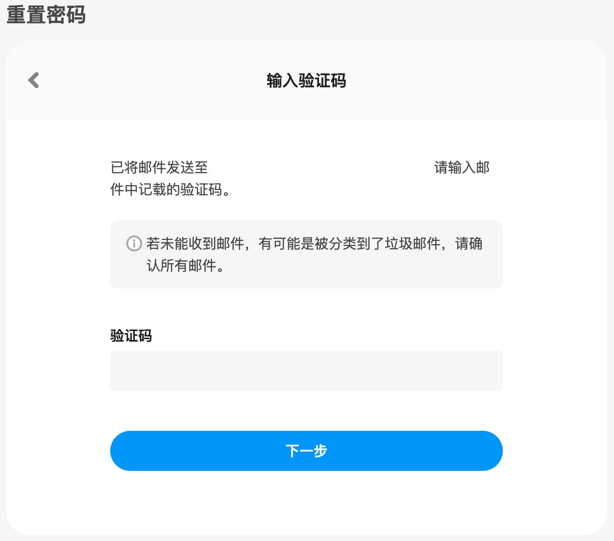 3、请将重置密码邮件中所记载的验证码,输入至验证码栏。