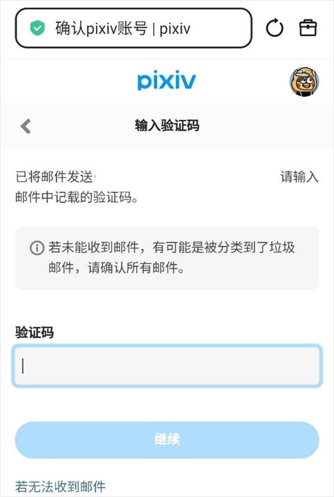 请确认是否有收到重置密码用的邮件(邮件名:[pixiv]重置密码用验证码通知)。