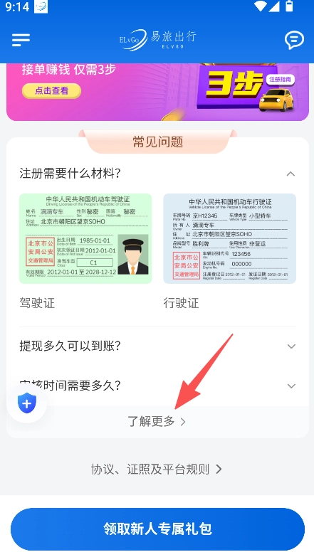 为了让新人福利能够直接触达用户,我们在显眼位置设置了新人专属礼包的领取入口。这样一来,司机在完成注册后就能立刻享受到福利,有助于提升平台对司机的吸引力,同时增强司机与平台之间的粘性。