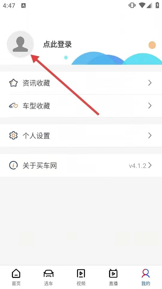 在【买车网】的个人中心页面,找到【点此登录】按钮并点击以完成登录步骤。