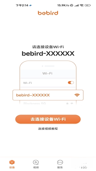 打开bebird设备,开启WiFi功能,连接名称为bebird-S5-xxxx的WiFi网络。
