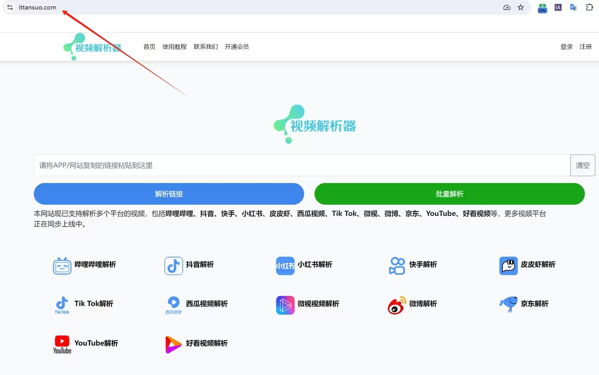 如果你不想任何软件,可以直接通过在线网站B站视频也是一种不错的选择。这里推荐使用“视频解析器”网站。