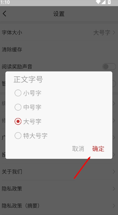 挑选好适宜的字体大小后,点击“确定”按钮来结束设置,新闻页面的文字展示会依据所选择的字号自行调节。