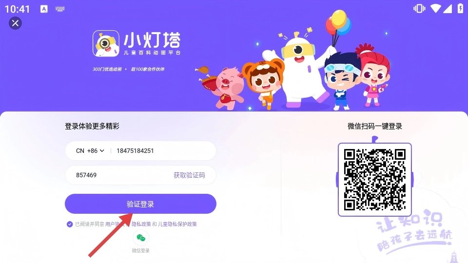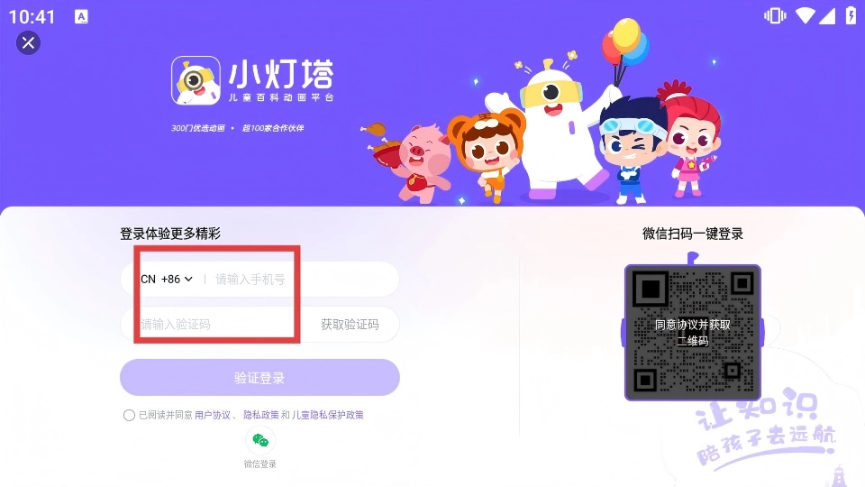 在登录界面填写手机号,获取并输入验证码,同时勾选同意相关协议。