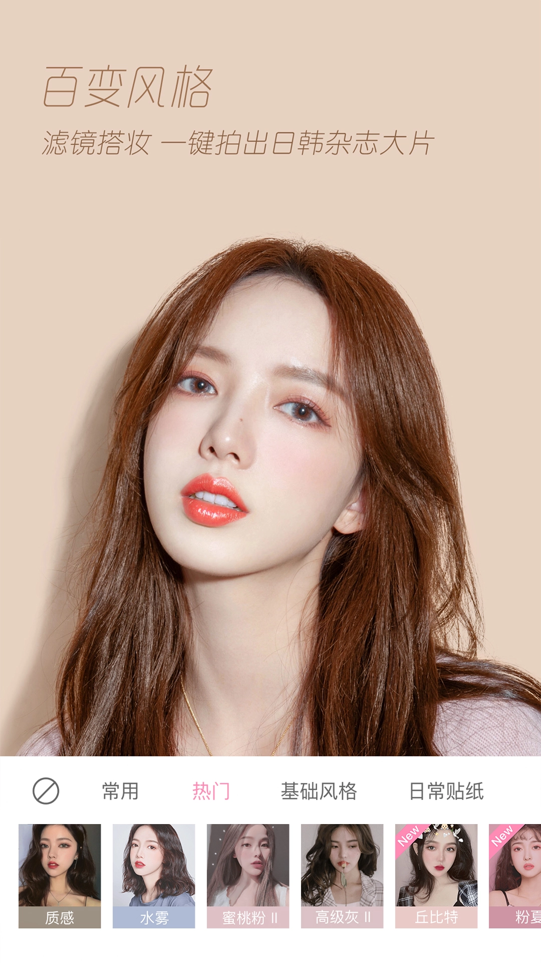 首页:呈现相机的核心功能,涵盖美颜、滤镜、拍照等,便于用户迅速进入拍摄状态。