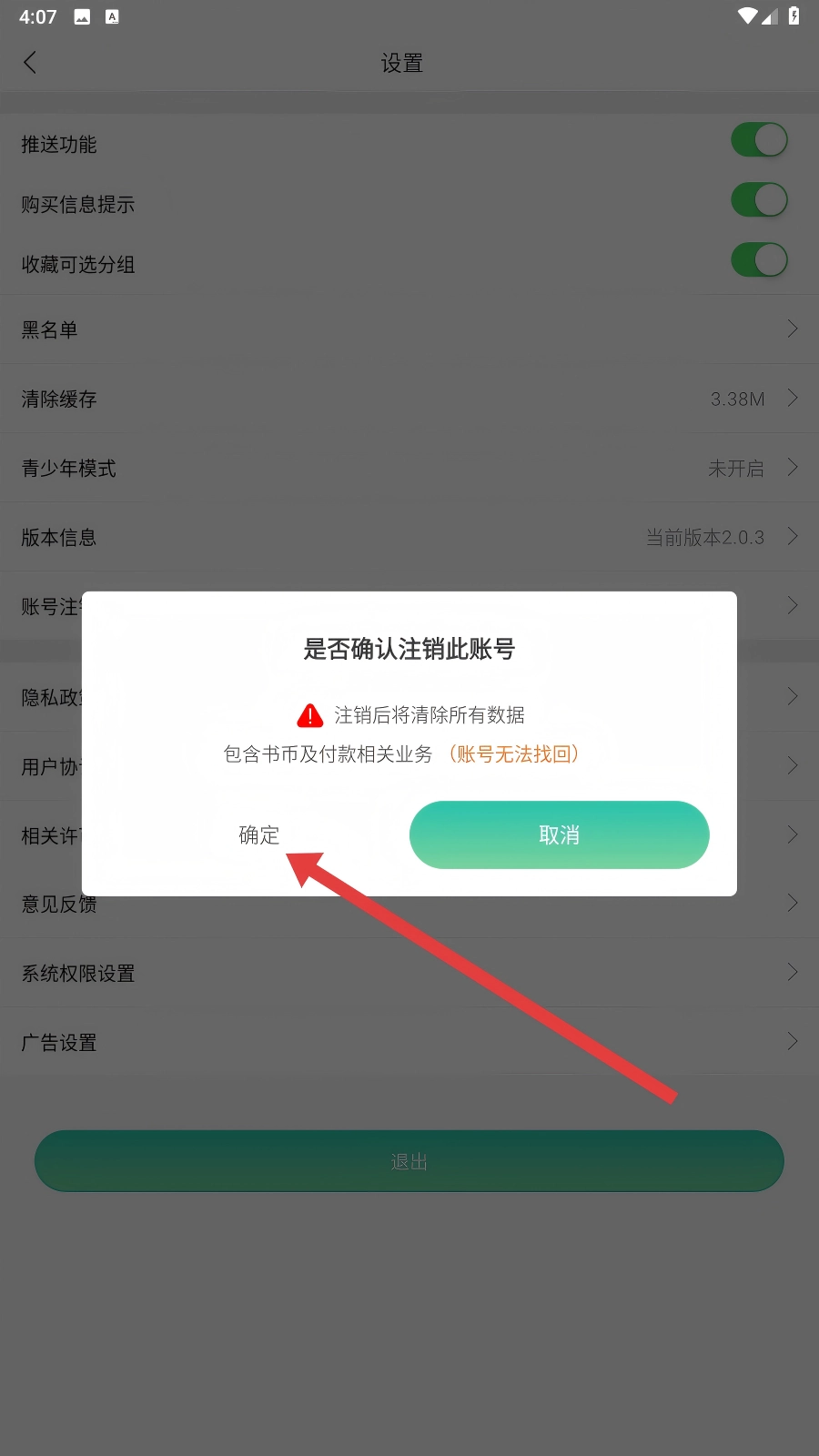 在弹出的确认窗口里点击【确定】按钮,就能完成账号注销操作,但需要留意的是,账号注销后相关数据将无法恢复。