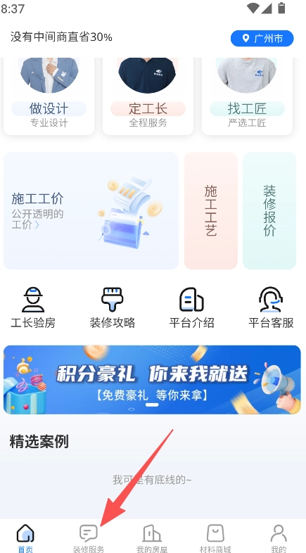 把装修服务和积分好礼活动结合起来,在提供实用装修服务的同时,给用户送上福利作为回馈,以此来提升用户的使用粘性和满意度。
