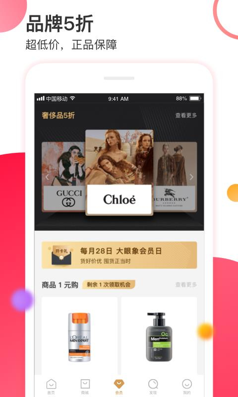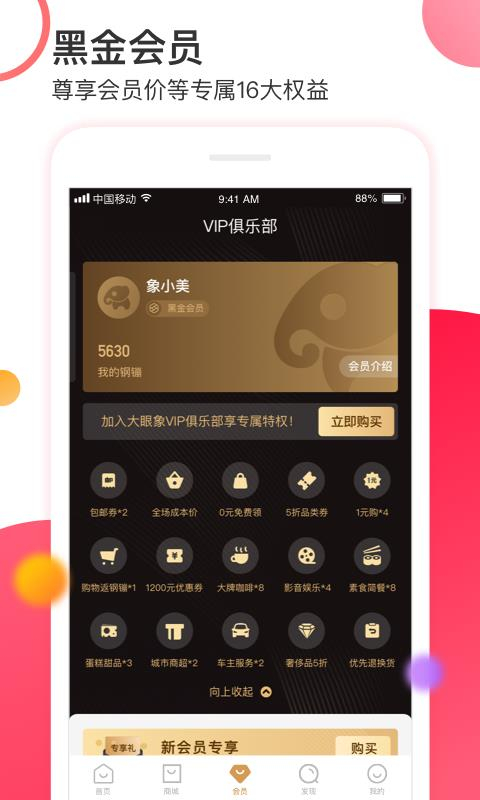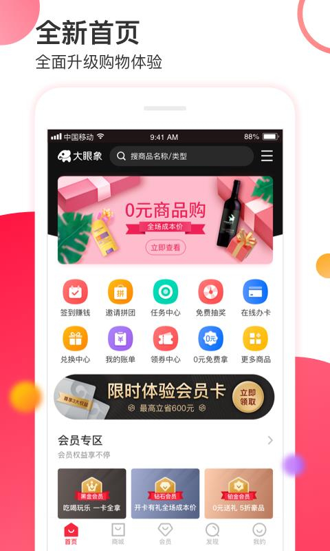大眼象是一家采用会员制模式的购物商城,为消费者打造了丰富的专属权益体系。成为会员后,即可解锁0元购、品质专区、独享成本价、奢侈品五折购等多重福利,全方位提升购物体验。平台商品覆盖食品、美妆、电器、日用百货等数十个品类,无论是日常所需还是品质好物,都能满足你对心仪商品的追求。进入感兴趣的专区即可随心浏览,沉浸式享受线上购物的便捷;还能邀请好友参与拼团,以更实惠的价格共享好物。