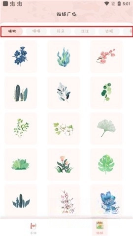 在贴纸广场里,平台把贴纸做了细致分类,大家可以尽情挑选心仪的贴纸来制作手账!