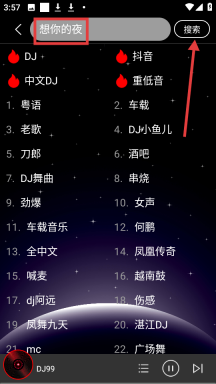 3、在搜索框中输入【想你的夜】后,点击【搜索】按钮,获取搜索结果。