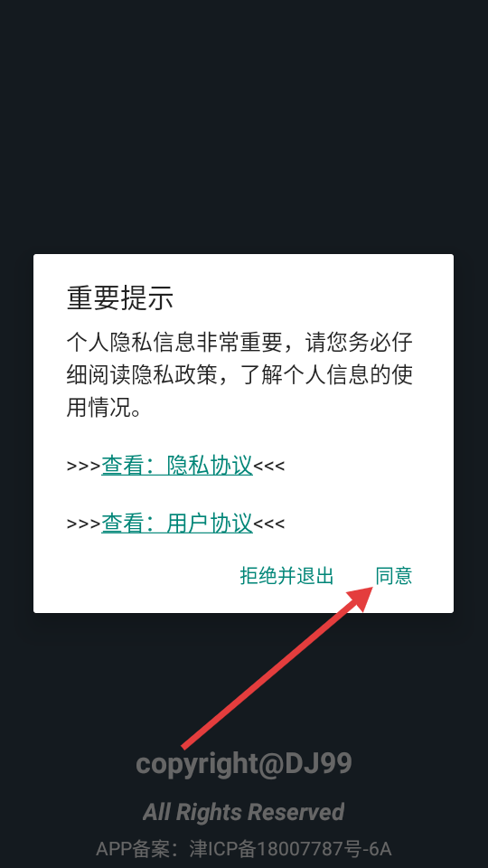 1、在重要提示弹窗里,点击【同意】按钮,即可开启服务。