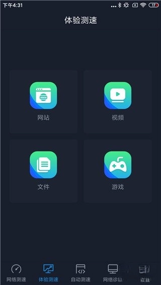 测速功能涵盖网站、视频、文件、游戏四大板块,用户能依据自身兴趣开展具有针对性的测速体验。