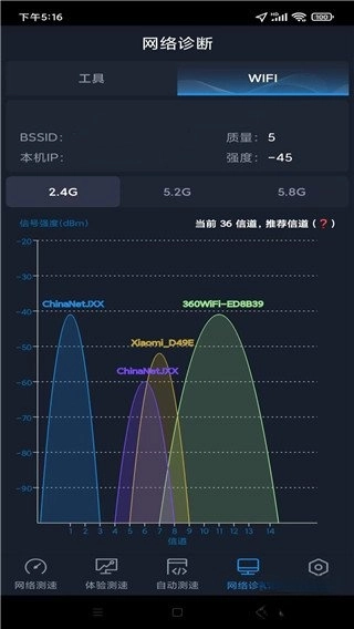 WiFi检测功能可检测WiFi信号强度与信道情况,为用户提供专业的数据参考。