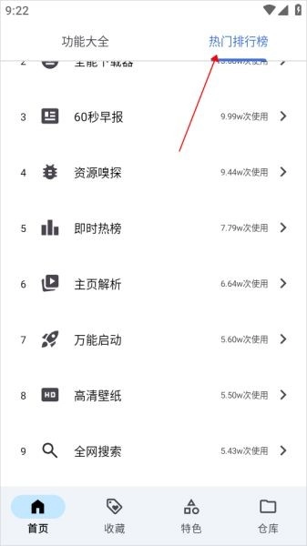 还有热门功能使用排行榜,像60秒早报、资源嗅探、万能启动、高清壁纸这类功能全都包含在内。