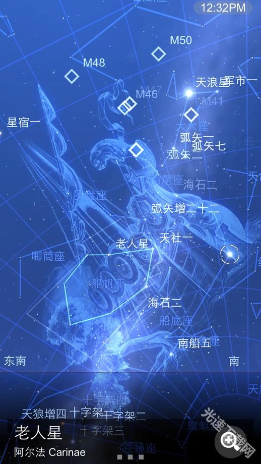增强模式:需要你的手机指南针,这样你不用触摸屏幕,只要对准手机的方向,就可以实时显示当前天空的方向