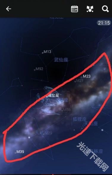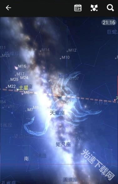 我进入系统的初始坐标设定为地球,毕竟是在地球上进行操作的。用户只需用手指滑动旋转界面,找到那条明亮的光带,那便是银河。下方三张图分别展示了银河中的天鹅座、天蝎座和猎户座,这些天体的位置均为实时状态。