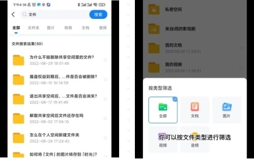 个人文件与照片支持AI智能分类,点击【搜索】输入关键词,或通过【文件类型】选项,即可快速查找所需内容。