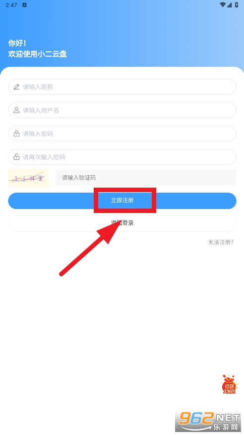进入云盘, 点击 立即注册