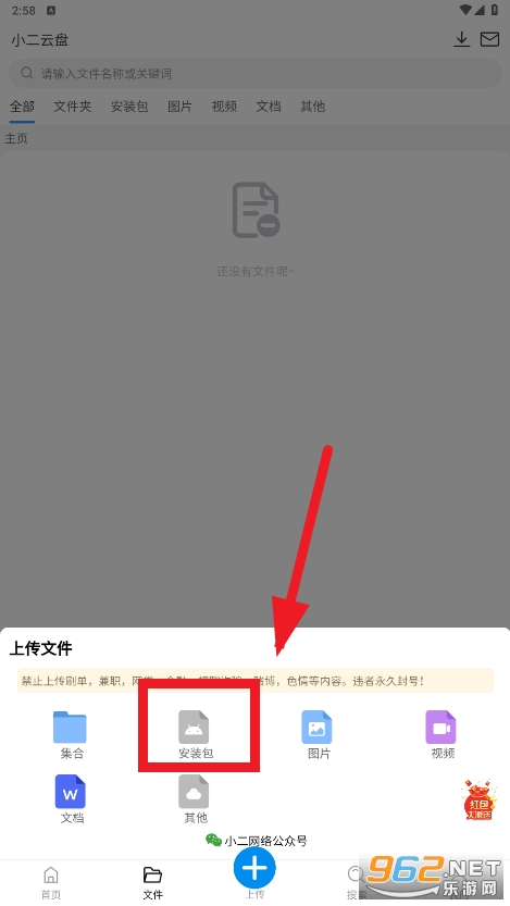 注册成功即可进入云盘的,点击中间的+