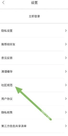 在“设置”页面里,找到“社区规范”这一选项并点击进入。