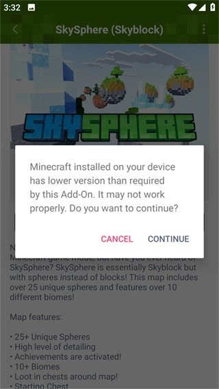 在这个界面点击CONTINUE,完成导入操作后,系统会自动跳转到我的世界游戏,玩家就能上线尽情游玩了!