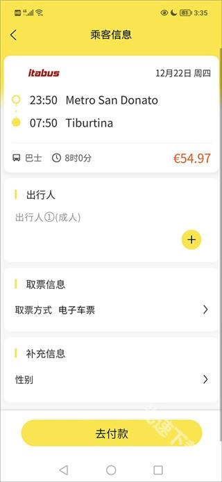 最后,在这个页面确认好乘客信息,添加完出行人、选择好取票方式、补充完整相关信息后,就可以点击去付款了。