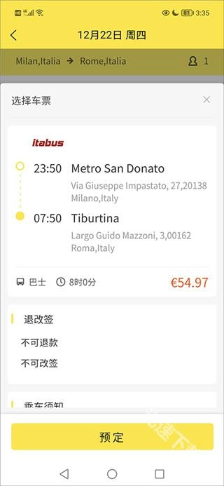 接着,在看清楚车票内容后就可以点击预定了;