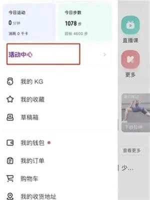 打开Keep应用,进入首页后,点击左侧的菜单栏,随后进入活动中心。