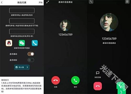 填写好号码或名称、号码归属地、延迟时间以及显示的图表就能进行模拟,还可以切换头像、更换背景等。最真实的是它还具备震动和响铃功能。你可以选择拒绝或者接听,但接听后不会有声音。