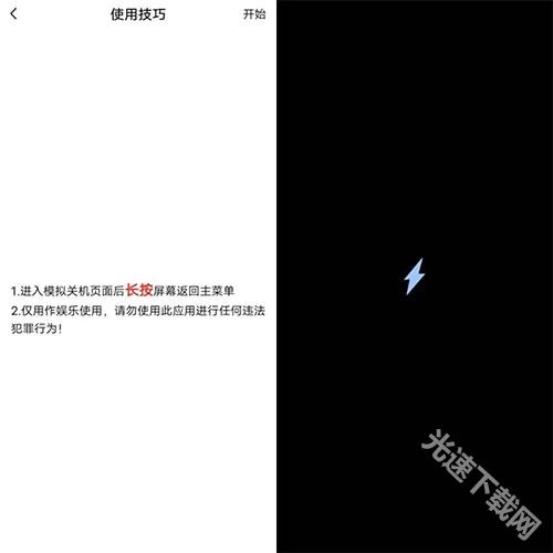 这个功能操作起来很简单,点击“开始”按钮就能模拟出关机页面,要是想回到主菜单的话,长按屏幕就可以了。