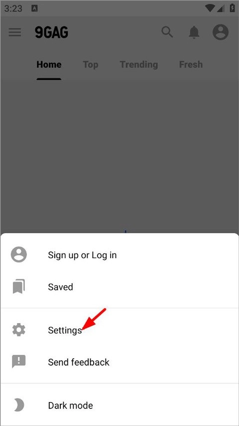 用户打开9gag应用,登录账号后进入首页,接着点击首页右上角的头像。