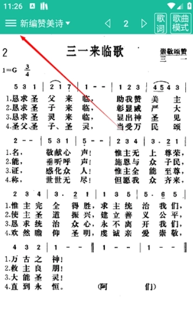2、收集了新编赞美诗、补充本、新编赞美短歌、雅歌、赞美诗歌1218等多本赞美诗。