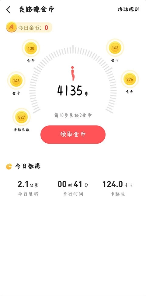 点击页面上方的“边走边赚”功能入口,就能将每日行走的步数兑换为金币。