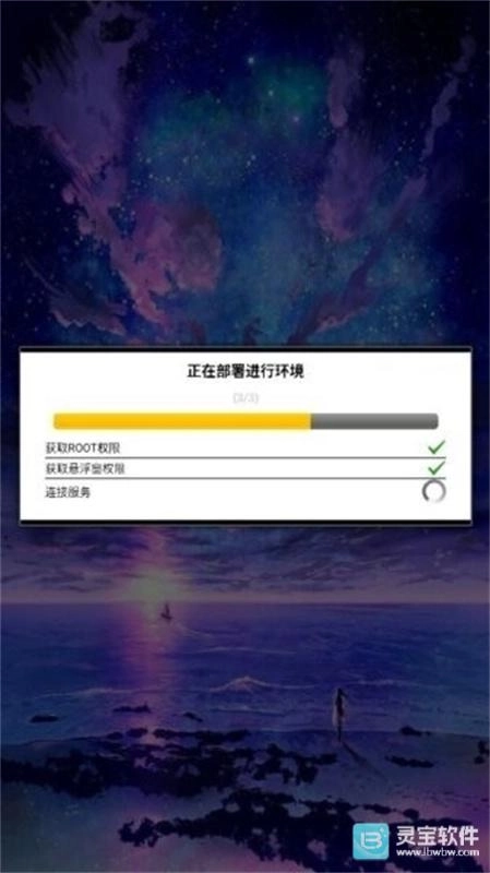 4、环境部署: 登录成功后,应用自动检测并部署系统环境,包括获取ROOT权限、申请用户权限、连接服务等。
