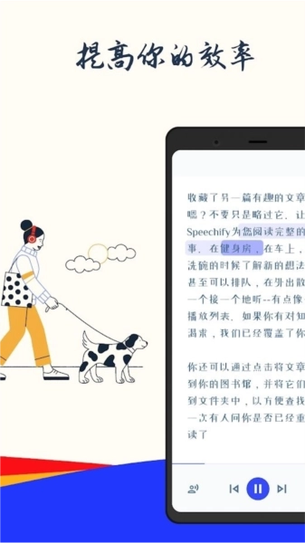 speechify安卓版是一款便捷实用的文字转语音播报工具,它能识别用户屏幕上的文字并转化为语音输出,让用户无需紧盯屏幕阅读,既节省时间,又能在听取信息的同时处理其他事务。该软件支持在线文章、PDF文件、实体书等多种内容形式,还可识别多种语音版本,丰富功能等待探索,支持在线切换语音来体验不同乐趣。